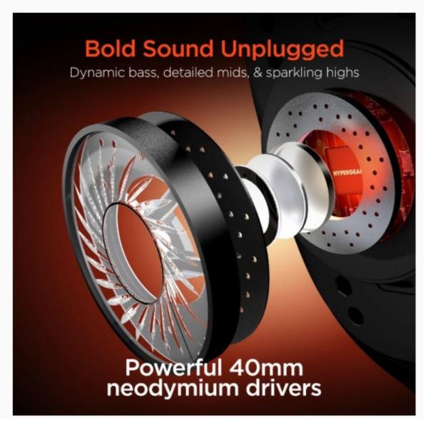Los potentes controladores de neodimio de rango completo de 40 mm brindan un sonido estéreo de alta definición con graves dinámicos, medios detallados y agudos brillantes para un sonido equilibrado y auténtico a cualquier volumen.