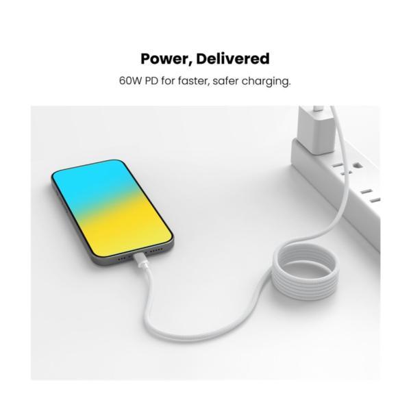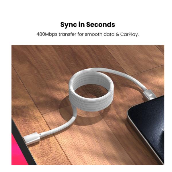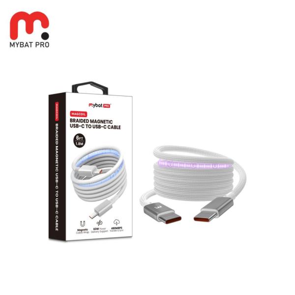 Conexión instantánea. El cable magnético trenzado MyBat Pro MagCoil USB-C a USB-C cuenta con un enrollador magnético integrado que mantiene los cables ordenados, seguros y siempre a mano. Diseñado para carga de alta velocidad y sincronización rápida, este cable de 1,8 m (6 pies) admite Power Delivery y transferencia de datos de hasta 480 Mbps. Gracias a la tecnología Smart Chip, que optimiza la carga de tus dispositivos, y a su exterior trenzado resistente al desgaste, está hecho para soportar desde cargas diarias hasta conexiones de larga distancia. Conéctalo, carga tus dispositivos y mantén todo organizado, sin enredos.