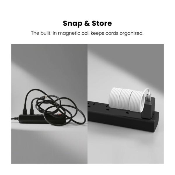 Enrollador magnético para cables: Mantiene el cable ordenado, sin enredos y fácil de guardar.