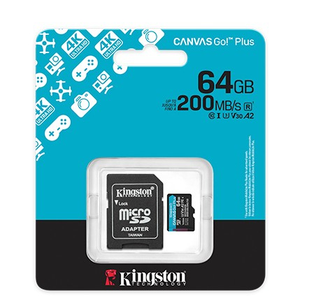 MEMORIA MICRO SD 64GB KINGSTON SDCG4/64GB CLASE 10 UHS-I V30 200 MB/S / 100 MB/S PARA DRONES Y CAMARAS DEPORTIVAS